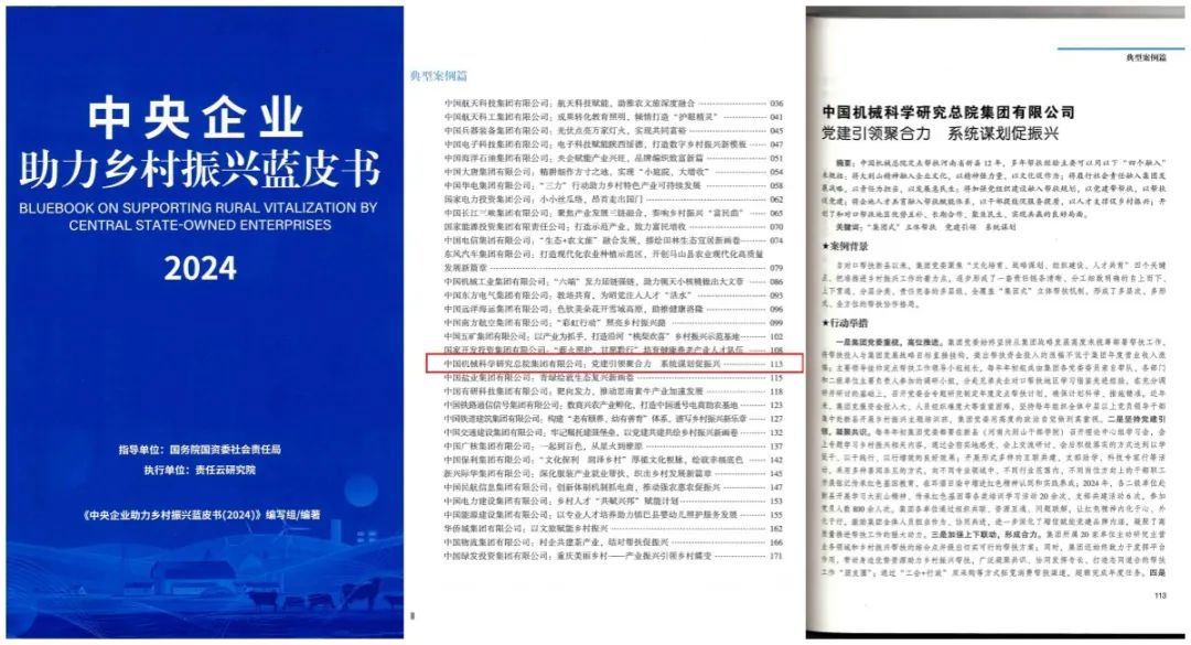 國(guó)務(wù)院國(guó)資委發(fā)布了《中央企業(yè)助力鄉(xiāng)村振興藍(lán)皮書(2024)》,集團(tuán)申報(bào)的《黨建引領(lǐng)聚合力 系統(tǒng)謀劃促振興》案例成功入選了2024年中央企業(yè)助力鄉(xiāng)村振興典型案例。
